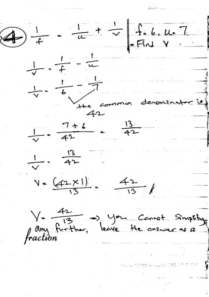 4. Make v the subject of this equation by finding its value! (Given that f=6 and u=7)
