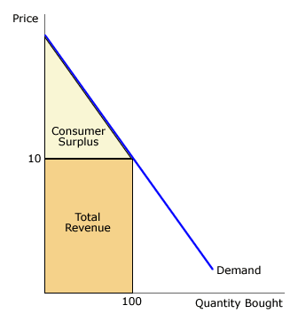 When the consumer is willing to pay more than $10 per unit, consumer experiences a consumer surplus.