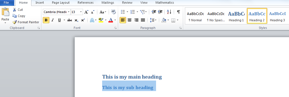 Do the same for the sub heading. But his time select Heading 2, since it’s a sub heading.