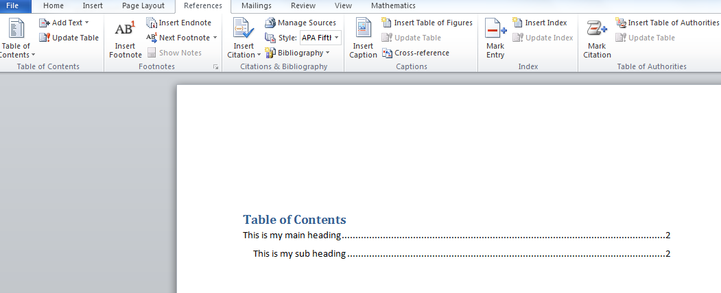 And voilà you have just created your custom Table of contents within seconds. The procedure is the sae even if you have hundreds of headings and sub-heading.